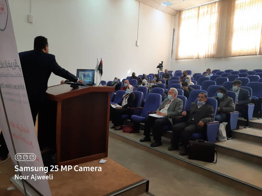 وبتوفيق وكرم من عند الله ومشاركة وتعاون من أعضاء المنظمة ومركز بحوث ودراسات الجامعة وبدعم شركة الفا للأدوية والمعدات الطبية والشركة الدولية لاستيراد الادوية والمعدات الطبية والشركة الهندسية لاستيراد الادوية وبحضور السيد معالي وزير البيئة وبحضور السيد رئيس الجامعة والسادة من مركز الخبرة القضائية ومشاركة أعضاء من وزارة السياحة ومشاركة السيدة الفاضلة رئيس قسم المخلفات الطبية بوزارة الصحة ومشاركة قيمة من السيد د الطاهر الثابت عن المخلفات الطبية وبحضور مديرة مكتب مكافحة العدوى من المستشفى الجامعي ومشاركة مركز بحوث الأحياء البحرية وبحضور مميز من عميدة بلدية زلطن ومشاركة كلية الاعلام والفنون بجامعة طرابلس وحضور الاستاذ دكتور خليل عن كلية الهندسة من جمهورية العراق الشقيق وبعض الاخوة الزوار من وزارة التعليم ومشاركة أعضاء المنظمة من الجنوب الحبيب ،، تم بحمد الله وتوفيقه عقد الندوة العلمية صباح هذا اليوم بمدرج كلية التقنية وكان الحضور البارز و المميز